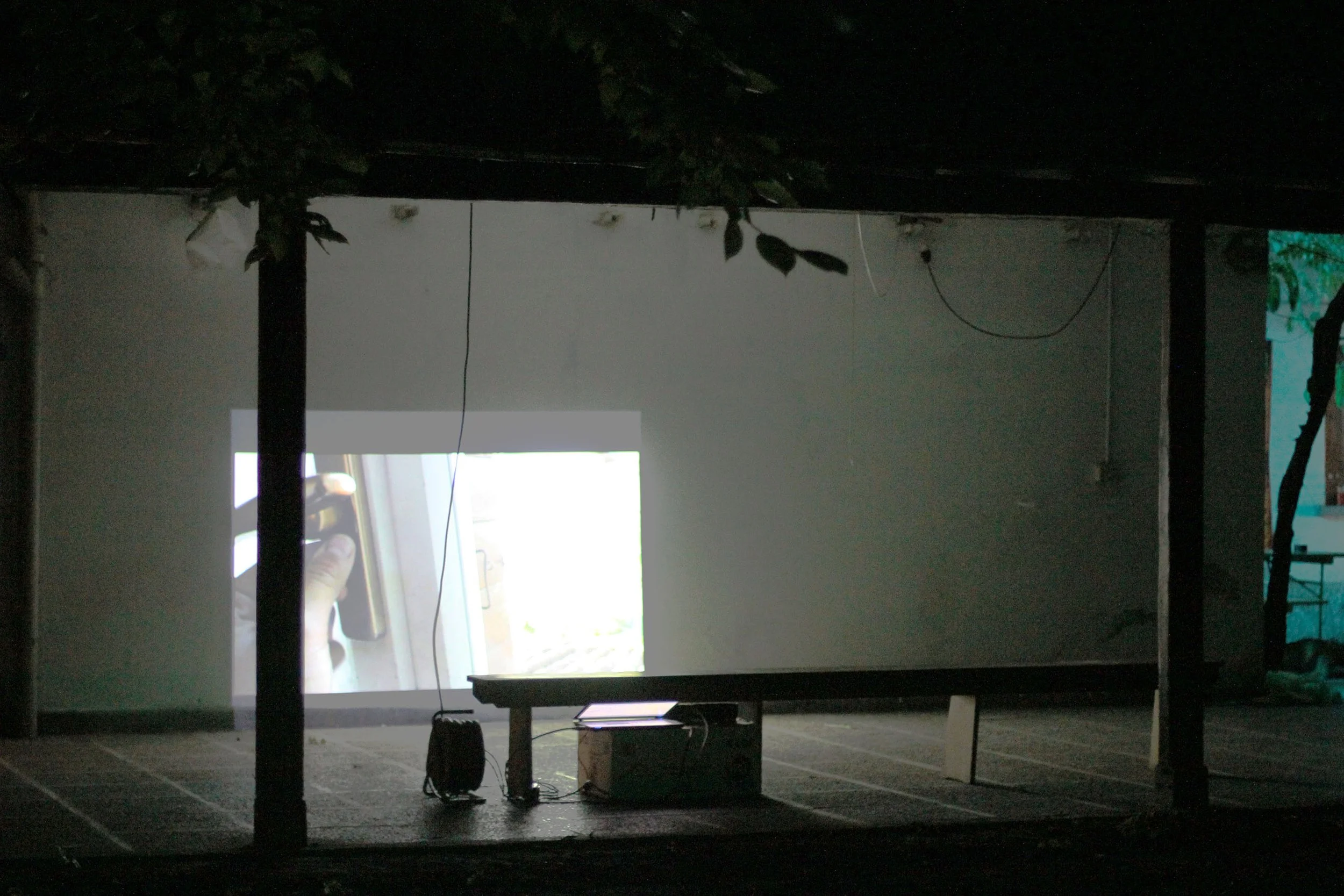 We asked fellow residency participants to record their walking through the empty house corridor, using a hand-held camera recorder for observation, following their own pace and curiosity. All participants had the same starting point at one end of the corridor. The recordings were later projected onto the outside of the building for the exhibition.
